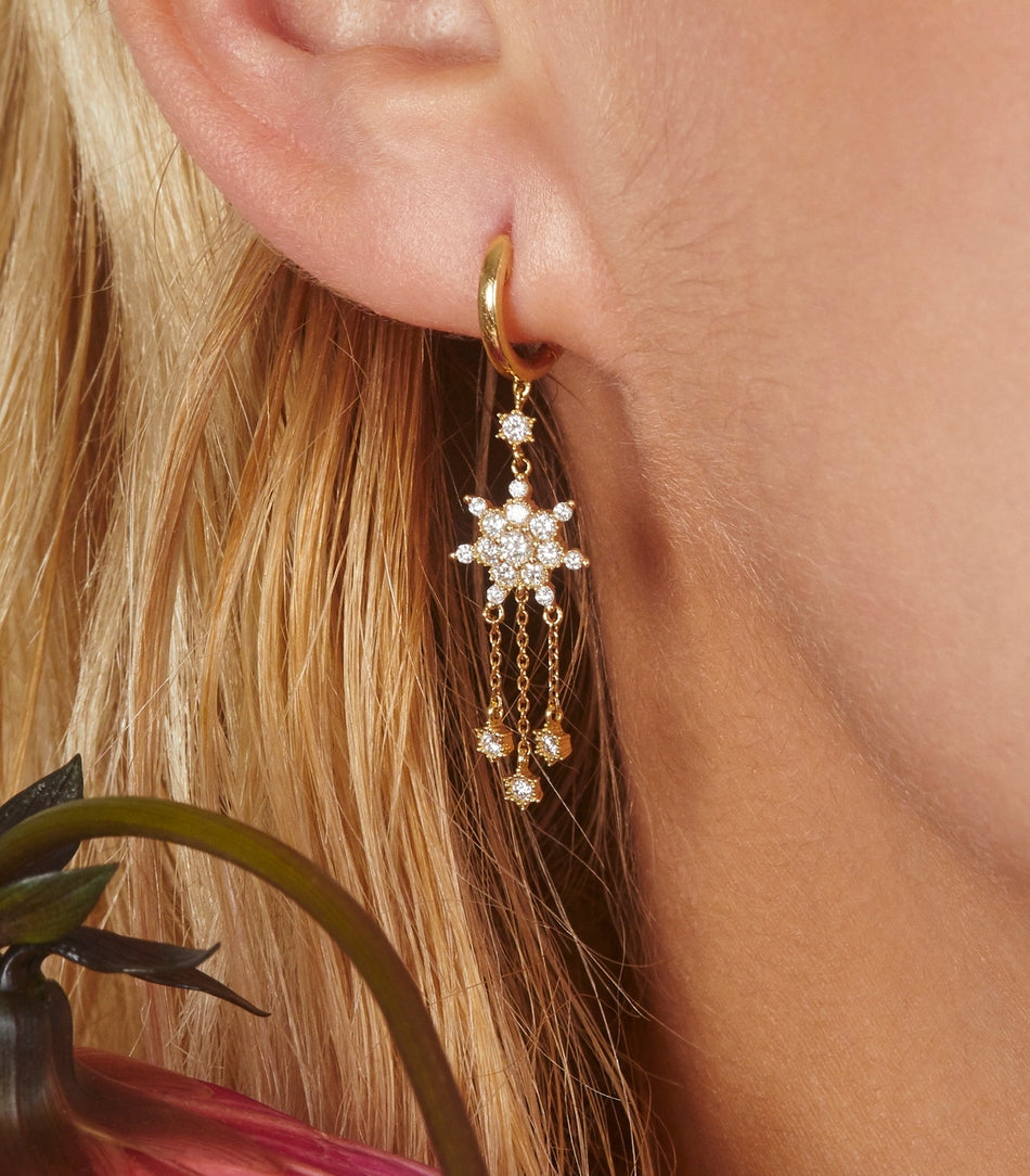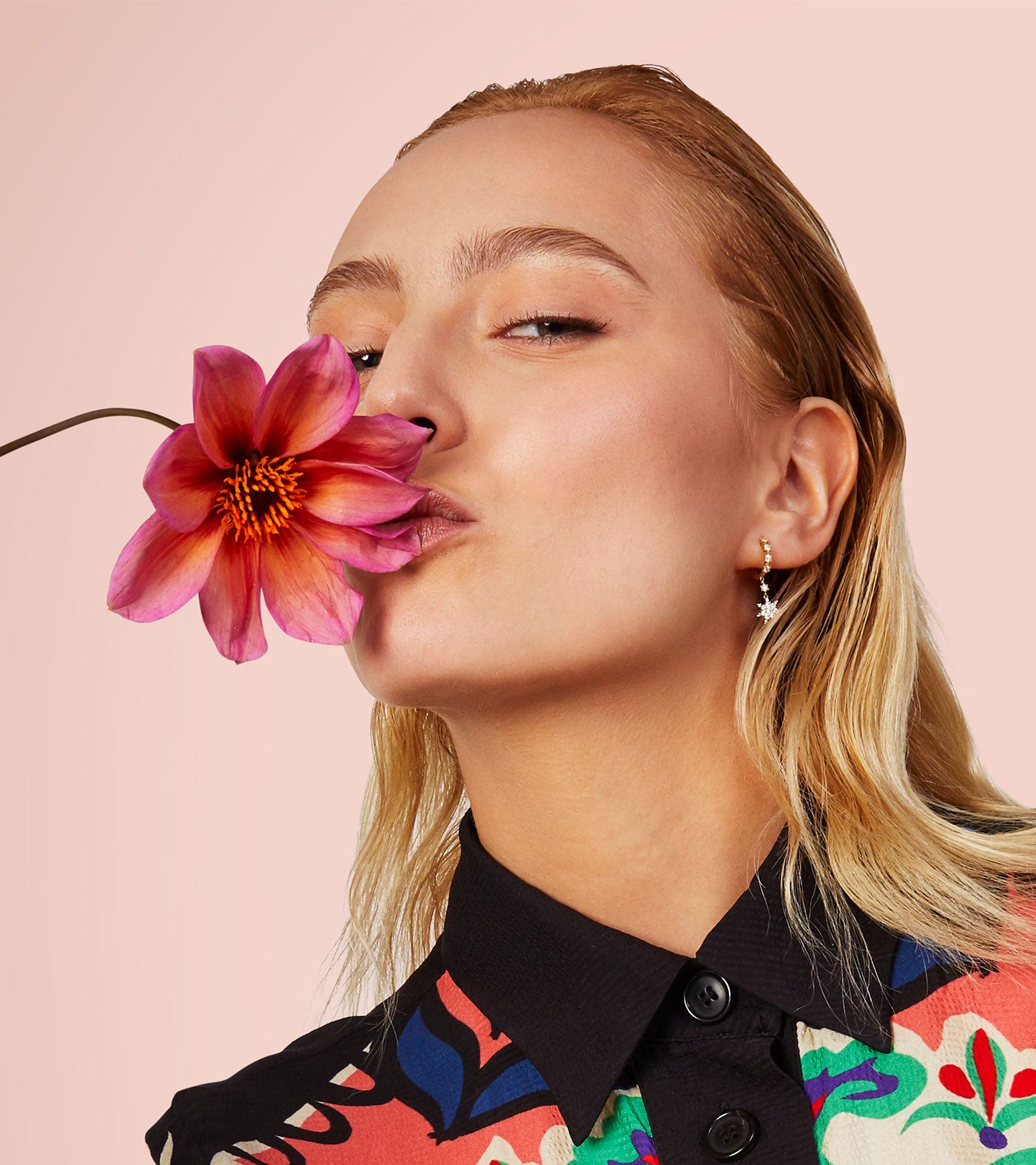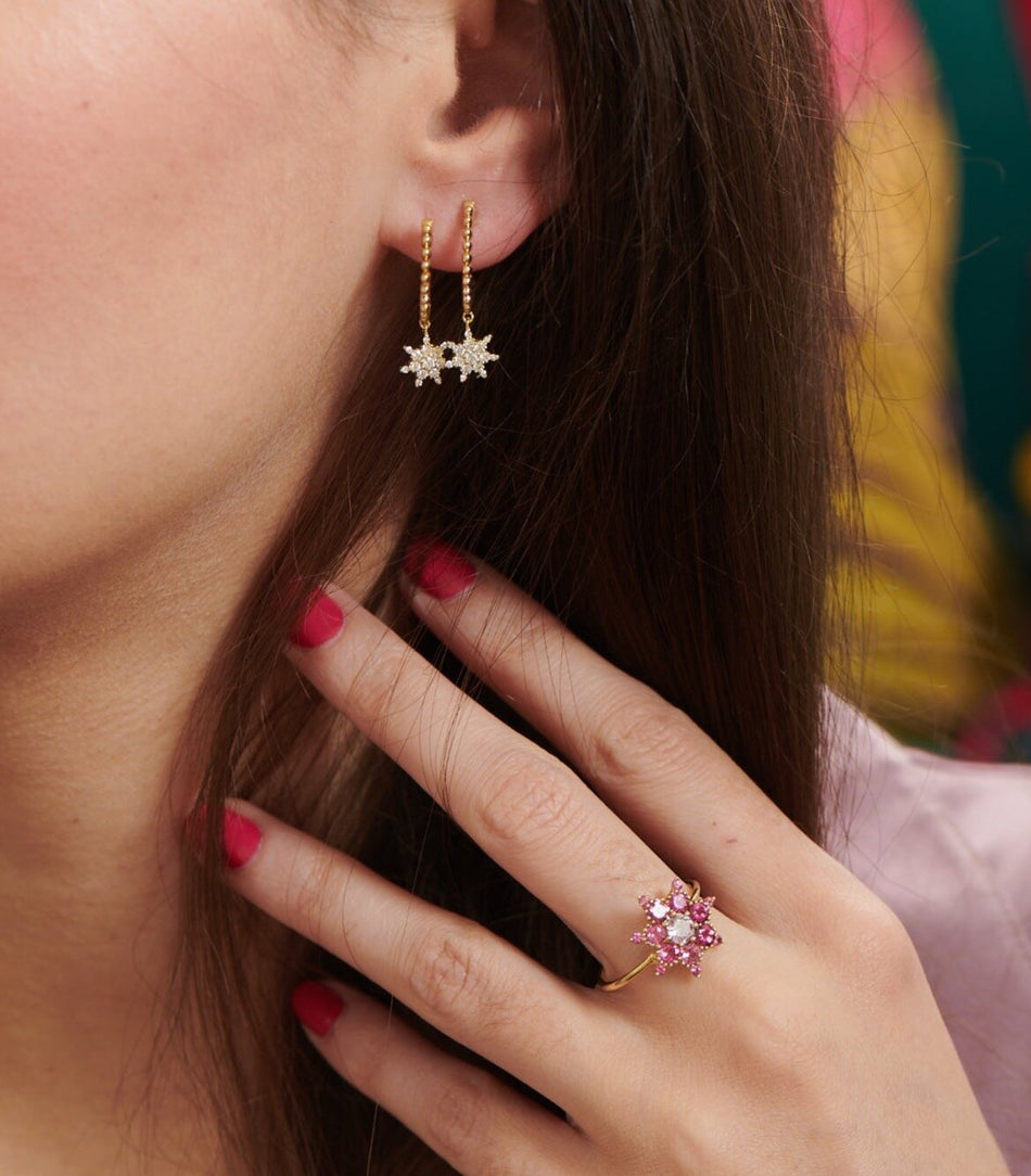 Rosa Maïtea's love hoop earrings are eco-friendly and offer pretty variations in gold and recycled diamonds: stars, waterfalls and solitaires come to life with the movements and sublimate the contours of the face with their shimmering radiance.