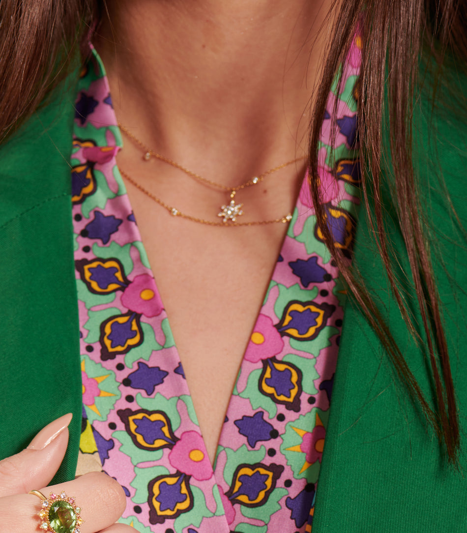 Las cadenas ecorresponsables de Rosa Maïtea están decoradas con diamantes reciclados o piedras finas rastreables. Quedan magníficos si se llevan solos gracias a sus brillantes diamantes y son igualmente perfectos para realzar los colgantes Bonne Étoile o Arcoiris.