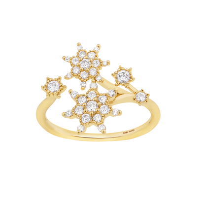 El anillo y el pendiente Jardin Cosmique se usan como muestras de amor, alegres odas a la belleza del cosmos y joyas responsables unidas en un abrazo eterno.
