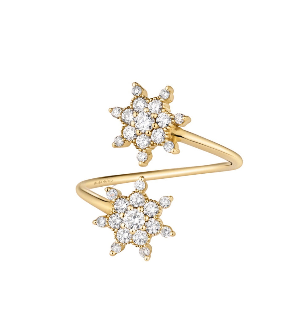 Dependiendo de su presupuesto, el tamaño y los quilates de sus diamantes, le sugerimos que los embellezca aún más gracias al engaste característico de Rosa Maïtea, compuesto por tres cuentas de oro del color de su elección, montadas en 6 puntos alrededor del diamante como una estrella de seis puntas, en una interpretación única y muy contemporánea del solitario.