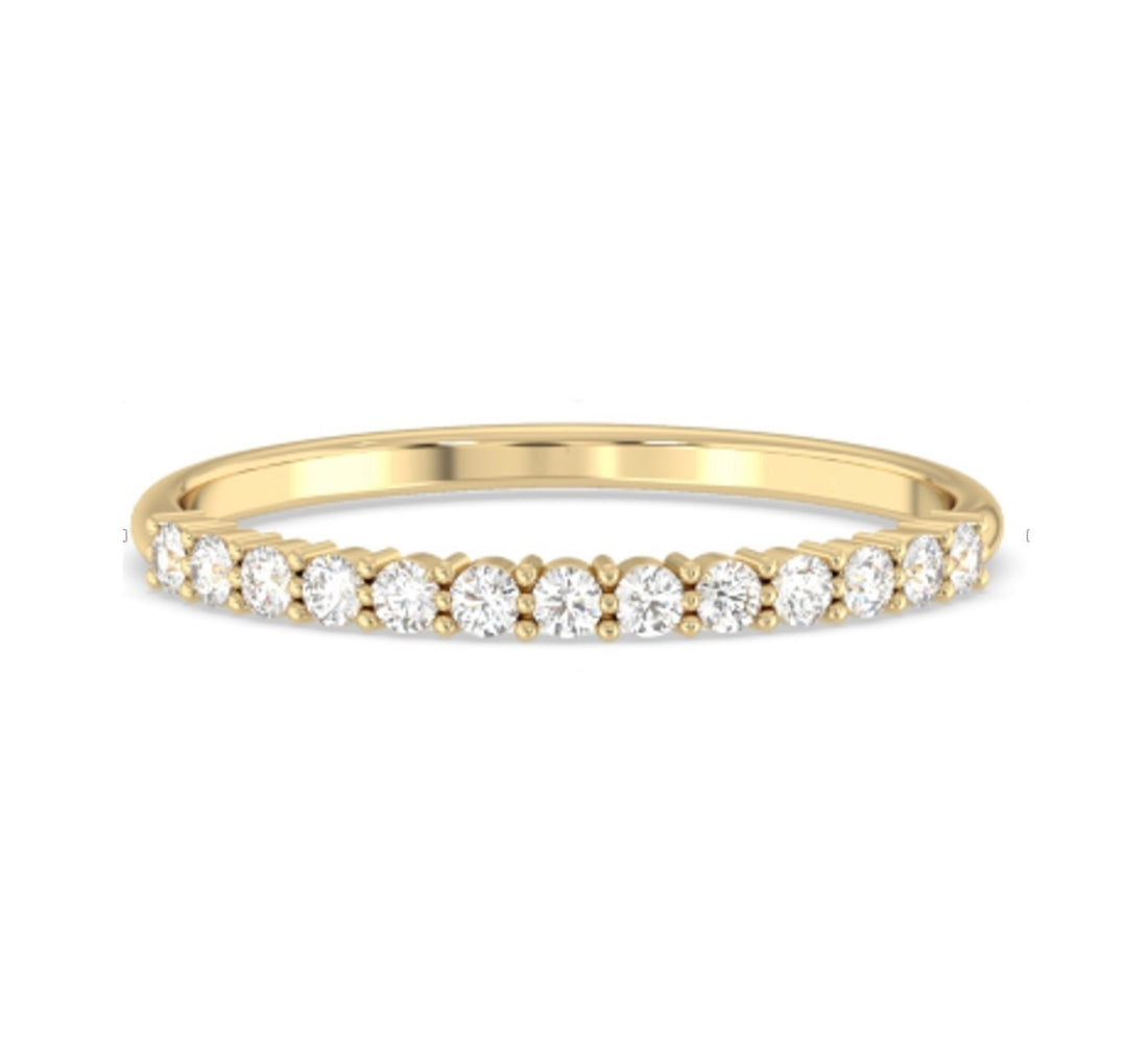 El brillo puro de los diamantes blancos reciclados combinado con el brillo del oro reciclado de 18 quilates santifica la unión de dos seres que se aman y la de la humanidad con la naturaleza.