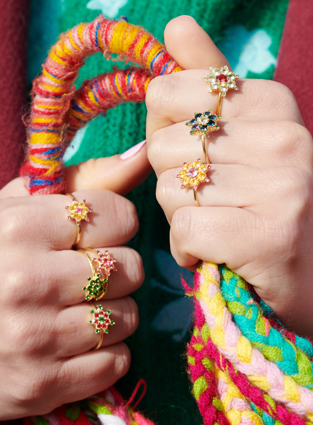 Detrás de la estrella está grabado el corazón con 5 rayos, el logo de Rosa Maïtea. El anillo Joie se puede llevar solo, apilado en todos los dedos de la mano o en combinación con los anillos Etoiles totalmente de diamantes o los anillos Arcoiris multicolor.