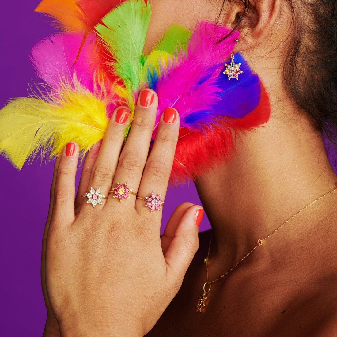 En oro reciclado de 18 quilates, el ético y colorido anillo Esperanza está adornado con dos irresistibles granates Mint y espinelas rosas de Tanzania que se pueden rastrear desde la mina hasta la caja. El anillo Esperanza encarna la esperanza de un mundo ético.