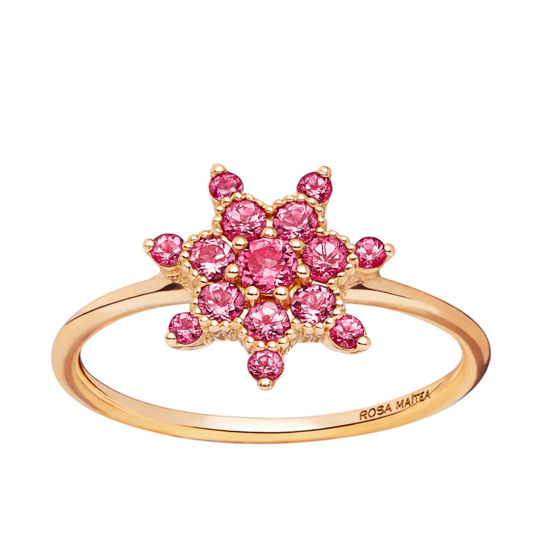 La estrella mide 14 mm de altura y está compuesta por 15 espinelas de color rosa intenso de 0,505 quilates. El diámetro de la estrella es de 10,7 m. El anillo está fabricado en oro reciclado de 18 quilates, pesa 2,11 gy tiene un diámetro de 1,3 mm.