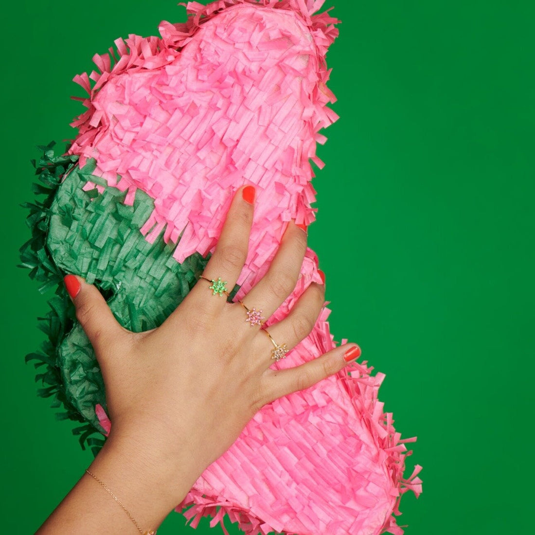 En oro reciclado de 18 quilates, el anillo ético La Rosa irradia un rosa intenso y precioso en tus dedos. Está compuesto de espinelas rosadas de Tanzania que se pueden rastrear desde la mina hasta la caja.