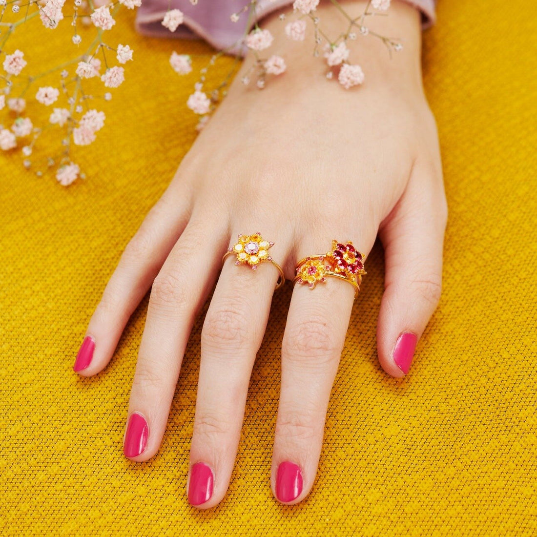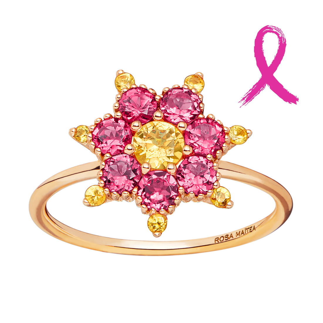 Realizado en oro reciclado de 18 quilates, el anillo ético Paz es tan hermoso e inspirado como su nombre indica: Paz es un deseo de paz dirigido al planeta y a la humanidad. Brilla con el magnífico brillo de un dúo de piedras finas, azafrán y rosas, procedentes íntegramente de Tanzania.