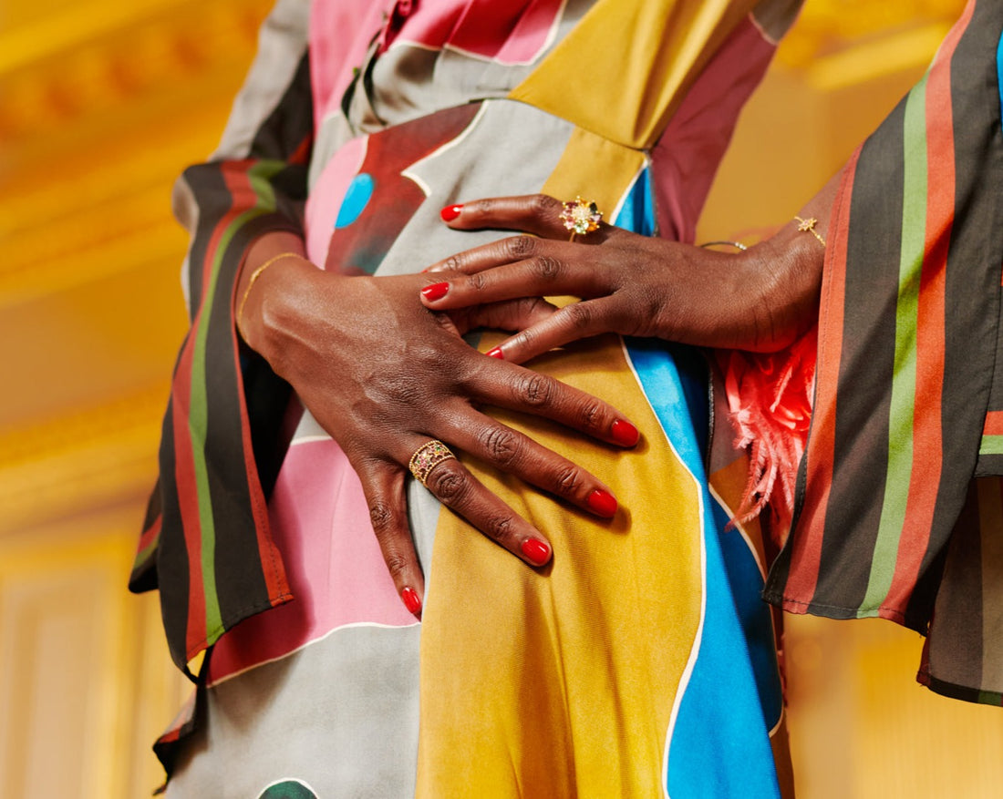 Les bagues Tourbillon se portent seules ou se collectionnent dans les différentes tailles comme autant de rosaces tournoyant sur les mains pour un porté hyper coloré.