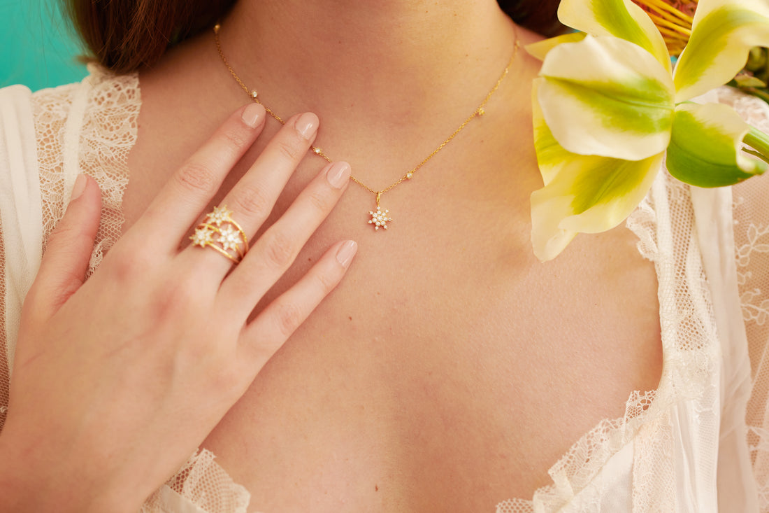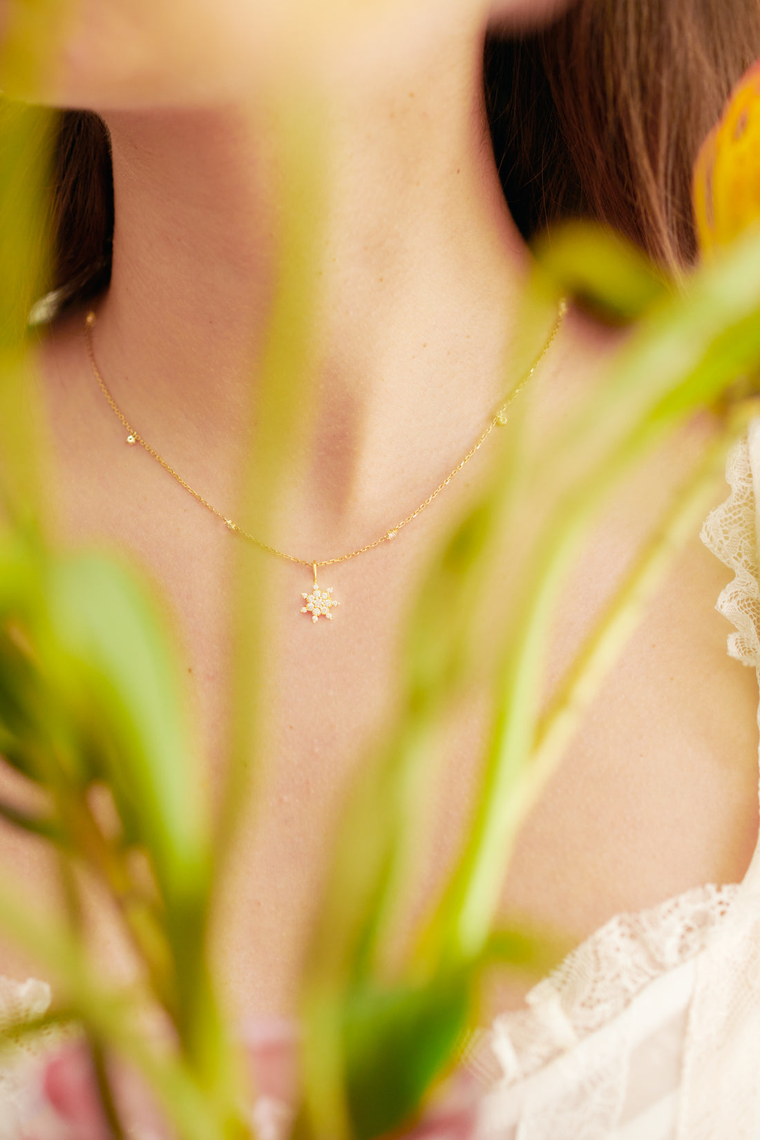 El colgante Bonne Etoile se lleva en nuestra cadena de oro reciclado adornada con 6 diamantes reciclados Rosa Maïtea, solos o combinados con otros colgantes, engastados con las fichas o el anillo de la misma colección. También puedes llevarlo con otros collares: familiares o de fantasía y crear tu propia composición. Su fianza ha sido diseñada para pasar perfectamente por todas las cadenas.