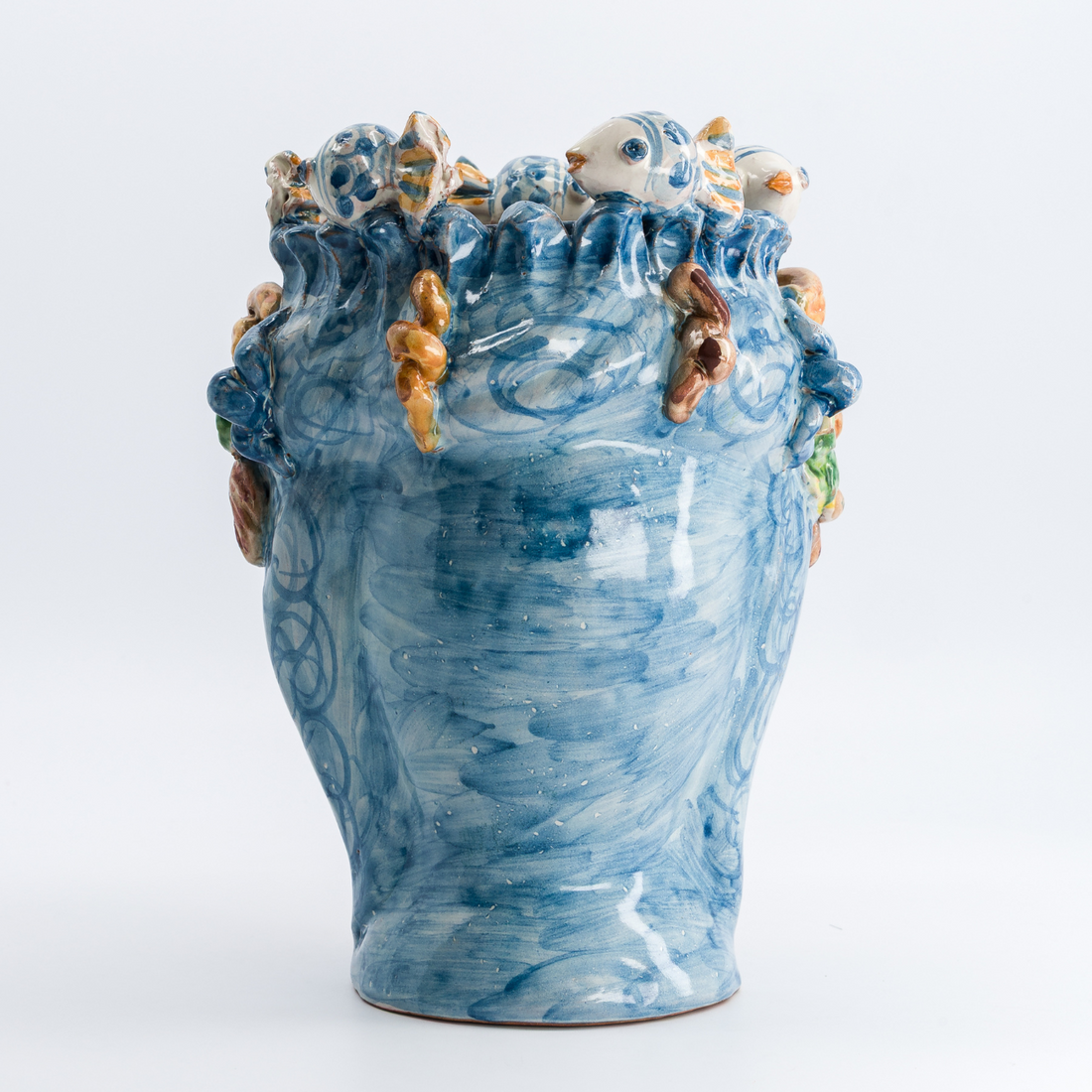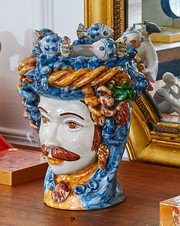 C’est en arpentant les ruelles de Caltagirone, ce joyau de la céramique sicilienne, que j’ai découvert ces Têtes de Maure fascinantes. Après les avoir admirées au musée d’anthropologie de Palerme, j’ai suivi mon intuition et cherché l’atelier d’un artisan dont le travail m’avait profondément touchée : Giuseppe Fasano. Son savoir-faire m’a éblouie par la finesse des traits, la richesse des couleurs et l’âme qu’il insuffle à chaque pièce.