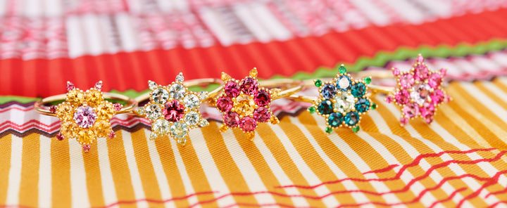 Nos collections Tourbillon, Arcoiris et La Favorite sont customisables et peuvent être composées avec les couleurs de pierres de votre choix. Il suffit de prendre RDV pour venir choisir les pierres aux couleurs de vos rêves.