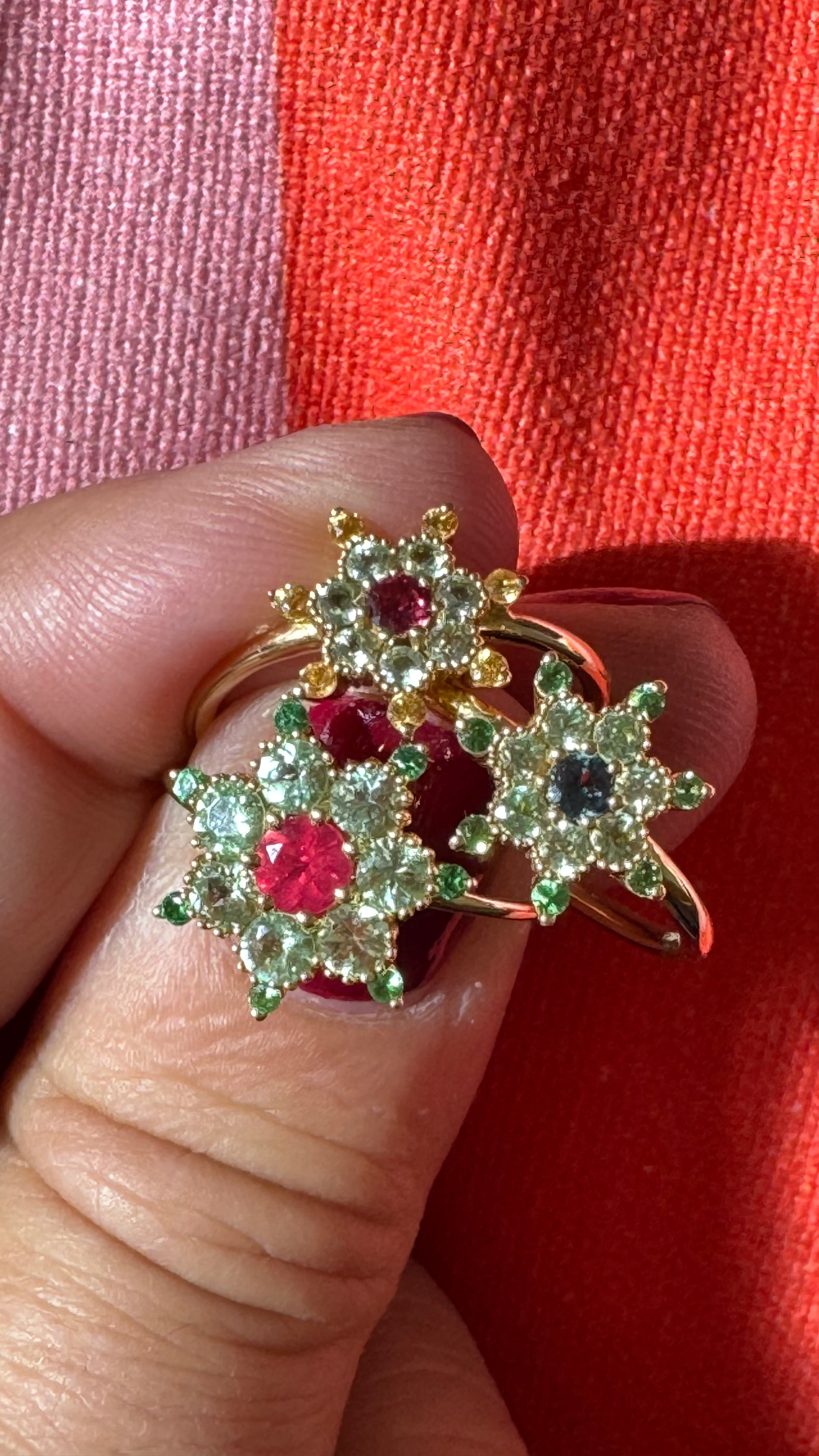 La bague Mimosa est une explosion de lumière et de tendresse, inspirée par les premières fleurs du printemps. Avec ses pierres jaune mimosa éclatantes, son cœur rose vibrant et ses pétales vert tendre, elle évoque la chaleur des jours heureux et la promesse d’un renouveau.