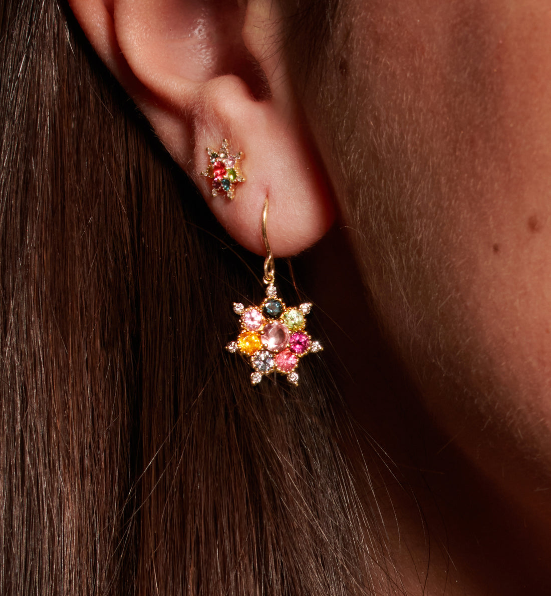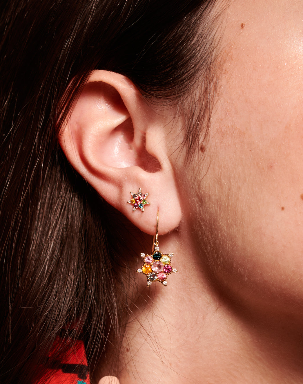 La BO éthique Dormeuse Arcoiris est la version arc-en-ciel de la BO Dormeuse Bonne Étoile de Rosa Maïtea. Elle est en or recyclé et sertie de pierres fines 100% traçables de Tanzanie aux magnifiques couleurs vives.