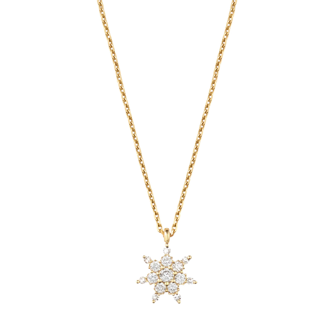 Chaque collier est réalisé en or recyclé 18 carats est composé de 15 diamants recyclés de 0,250 carats. La totalité du collier a 0,135 carats et pèse 1,41 grammes. C’est votre talisman de chance et d’amour, qui chaque jour vous rappelle que vous contribuez à un monde meilleur. Derrière l'étoile on retrouve le cœur à 5 éclairs, logo de Rosa Maïtea.