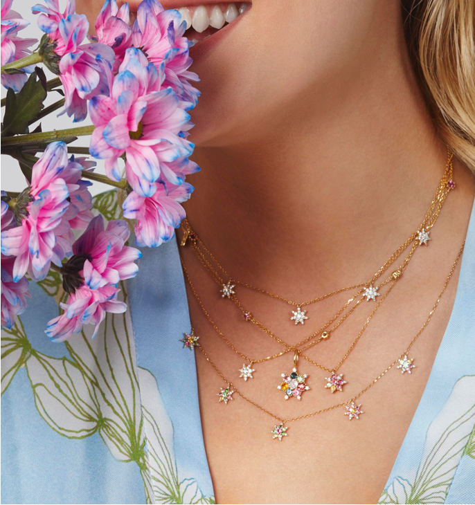 Le collier bonne étoile Arcoiris est la version arc-en-ciel du collier Bonne Étoile Diamants. Variation polychrome et créative sur le thème de l’étoile, le collier est en or et diamants recyclés et serti de pierres fines 100% traçables de Tanzanie aux magnifiques couleurs vives.