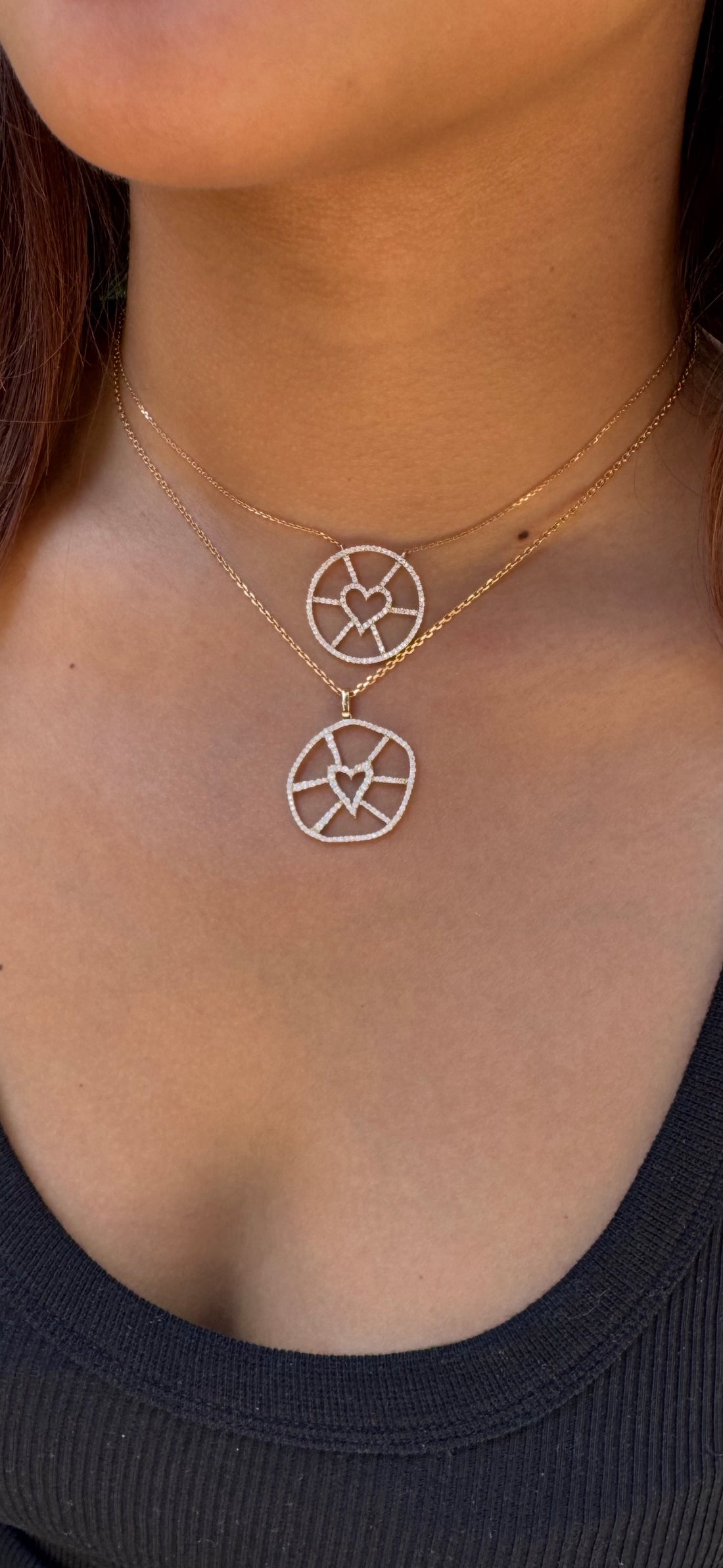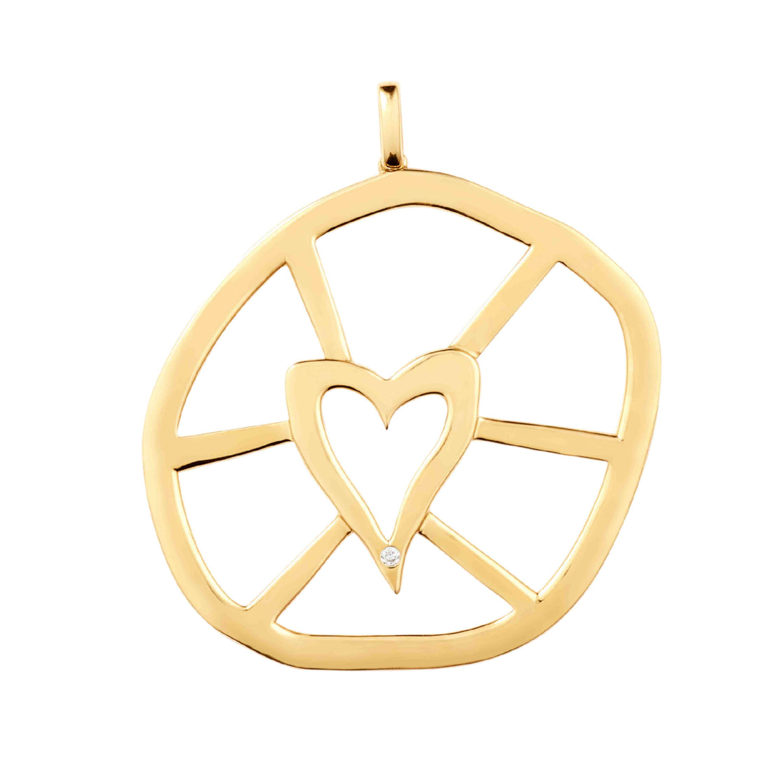 Créé à la main par Patricia, ce pendentif Corazón Irregular en or 18 carats et un petit diamant exprime la beauté de l’imperfection. Symbole du mantra de la Maison Spread Love Toujours, ce bijou artisanal incarne un geste d’amour sincère, un talisman à porter près du cœur.
