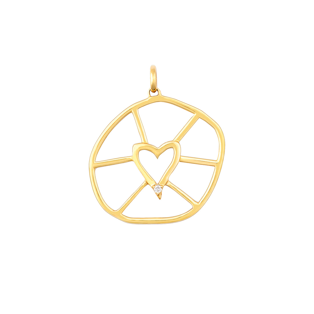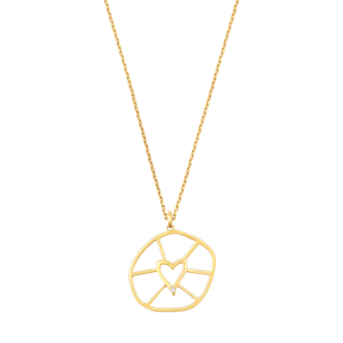 Tout en subtilité, le pendentif Corazón Mini Or révèle une interprétation plus intime du symbole iconique de Rosa Maïtea. Entièrement façonné en or, son dessin aérien laisse circuler la lumière, tandis qu’un diamant discret, posé à la pointe du cœur, vient signer la pièce d’un éclat doux et confidentiel.